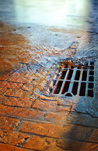 Urgent unblocking of stormwater pits and grated inlets clogged with leaves, dirt, or debris during storms to prevent backflow and surface flooding.